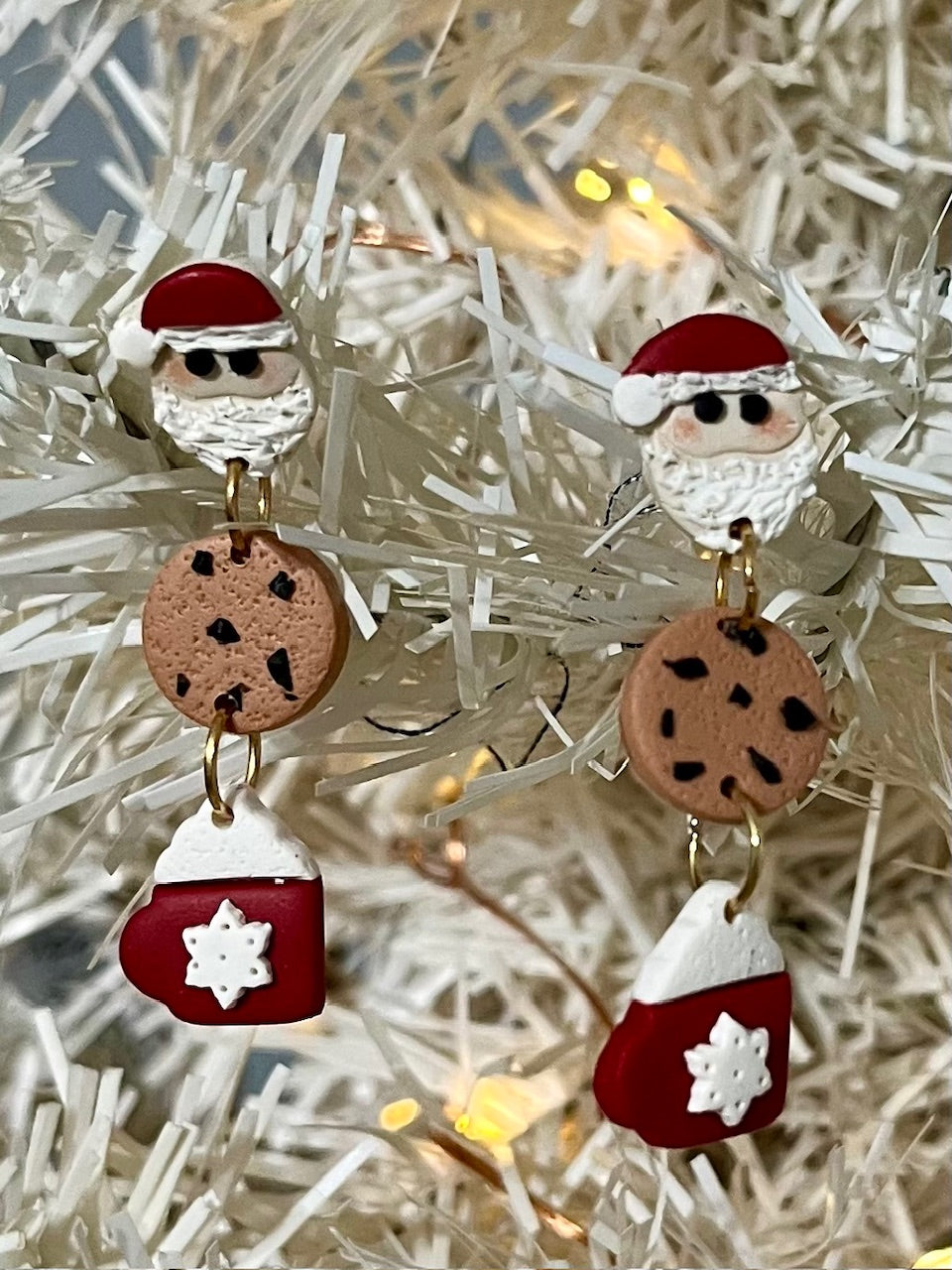 Clay Polymer Santa and Cookies dangle. This set can also be purchased as a stud trio. Perfect for big sister and little sister.