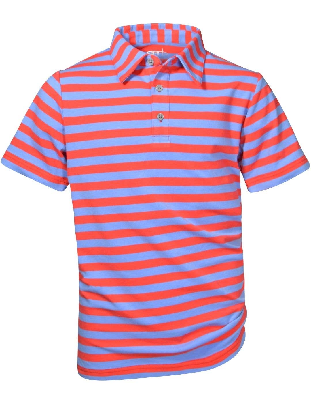 Youth boys feed striped polo shirt * Cotton/poly Blend * Feed stripe * UPF 50+ Sun Protection. If unsure on size, please contact info@thetrendycloset.com and we'll recommend a size for best fit. This item fits like an Adult Small/Youth XL