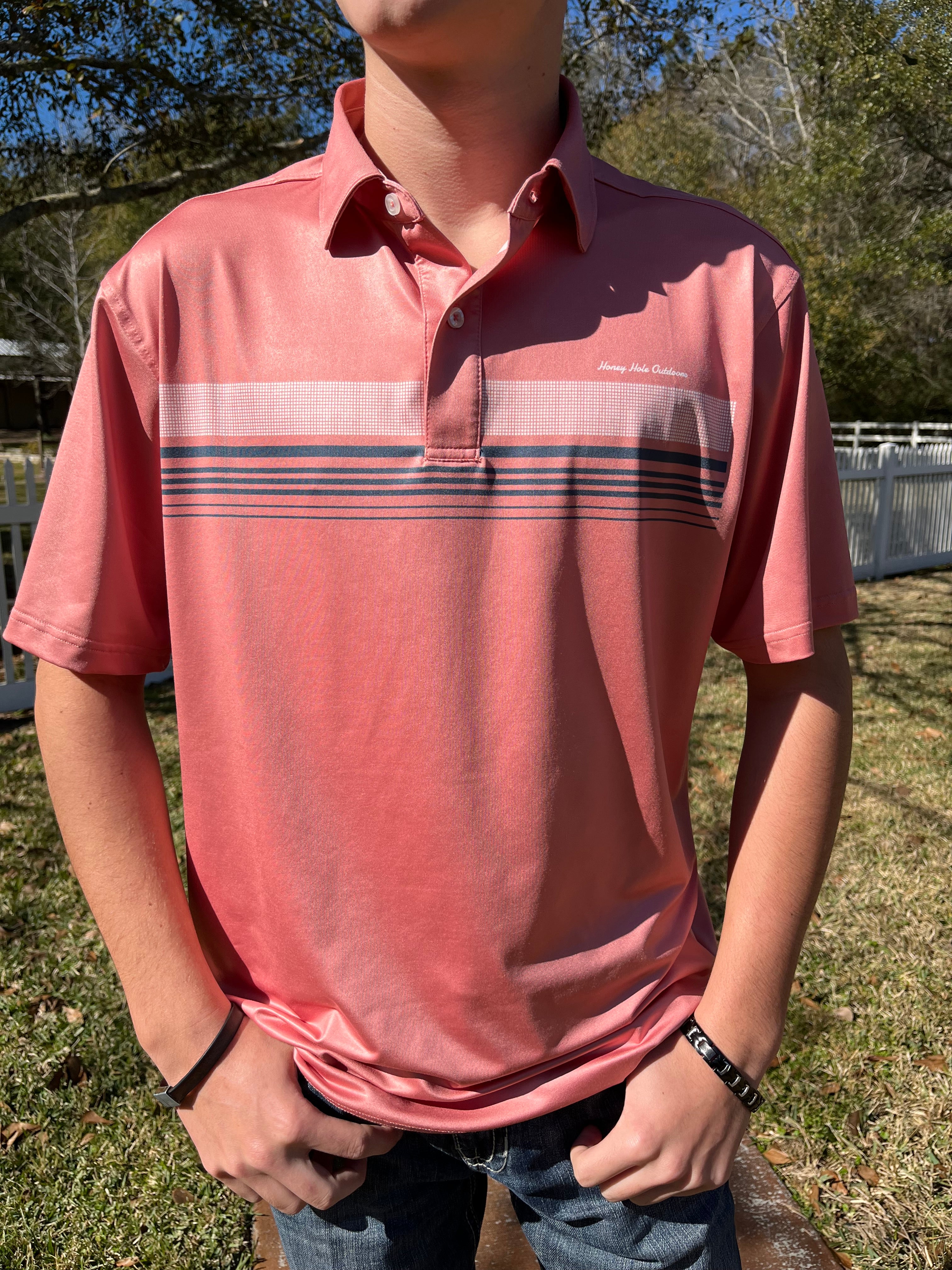 Whether you're going to church or hitting the links, the Honey Hole Polo has you covered! 90% Poly 10% Spandex