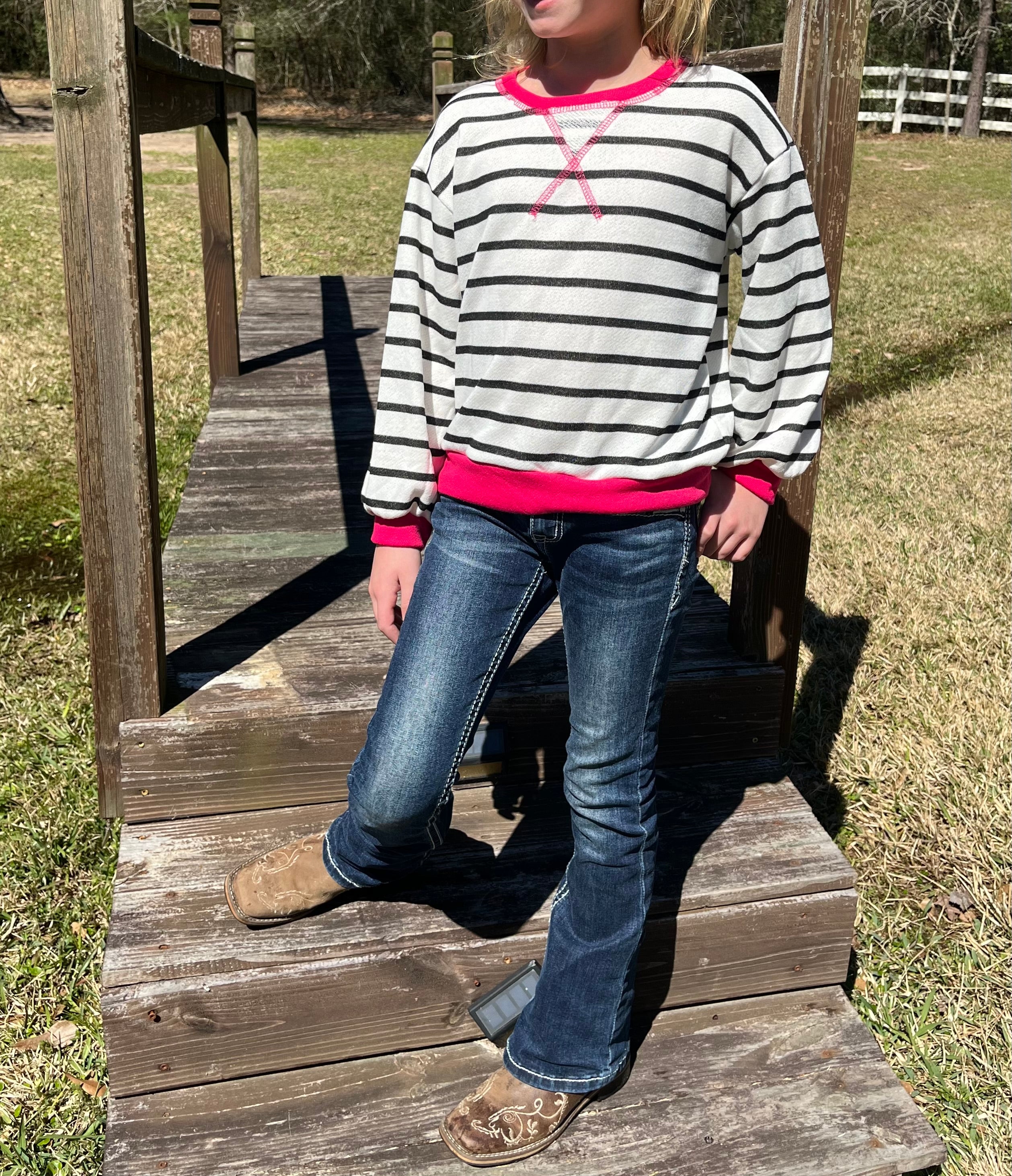 TWEEN COLLECTION Striped French terry knit fabric - Contrasting round neckline, ribbed hem and cuffs - Stitched...